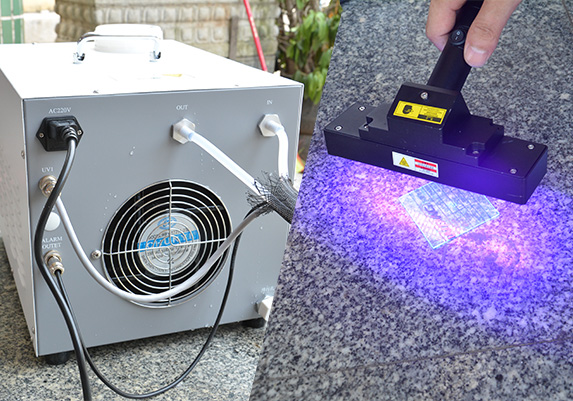 • 光源配置:0.56KW*1支,水冷式灯头主峰波长:365nm(纳米)